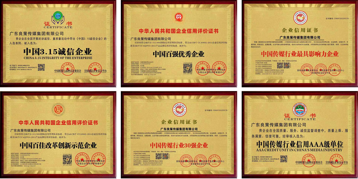 良策集团先后获得荣誉奖项有:中国自主创新企业大奖、中国3.15诚信企业、中国传媒行业30强企业、中国百佳改革创新示范企业、中国传媒行业信用AAA级单位、中国传媒行业十佳诚信连锁企业、中国传媒行业先进企业、中国百强优秀企业、中国传媒行业最具影响力企业等。而良策集团创始人梁锦达先生本人因对传媒行业作出巨大贡献,于2022年荣获了中国传媒行业十大杰出企业家大奖。同年获得中国投资控股有限公司委任为中国品牌立项投资人,负责投资国内产业,帮助中国工厂向中国品牌升级,以国家战略理念品牌强国为中心思想帮助中国民营企业做强做大,打造中国民族品牌。