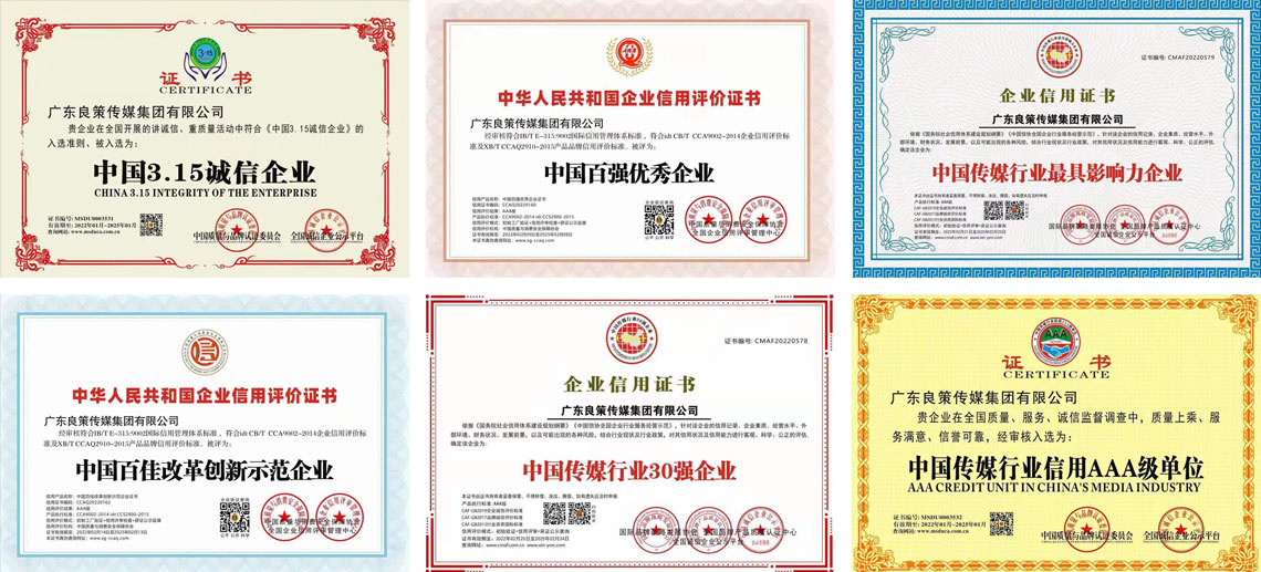 良策集团先后获得荣誉奖项有:中国自主创新企业大奖、中国3.15诚信企业、中国传媒行业30强企业、中国百佳改革创新示范企业、中国传媒行业信用AAA级单位、中国传媒行业十佳诚信连锁企业、中国传媒行业先进企业、中国百强优秀企业、中国传媒行业最具影响力企业等。而良策集团创始人梁锦达先生本人因对传媒行业作出巨大贡献,于2022年荣获了中国传媒行业十大杰出企业家大奖。同年获得中国投资控股有限公司委任为中国品牌立项投资人,负责投资国内产业,帮助中国工厂向中国品牌升级,以国家战略理念品牌强国为中心思想帮助中国民营企业做强做大,打造中国民族品牌。